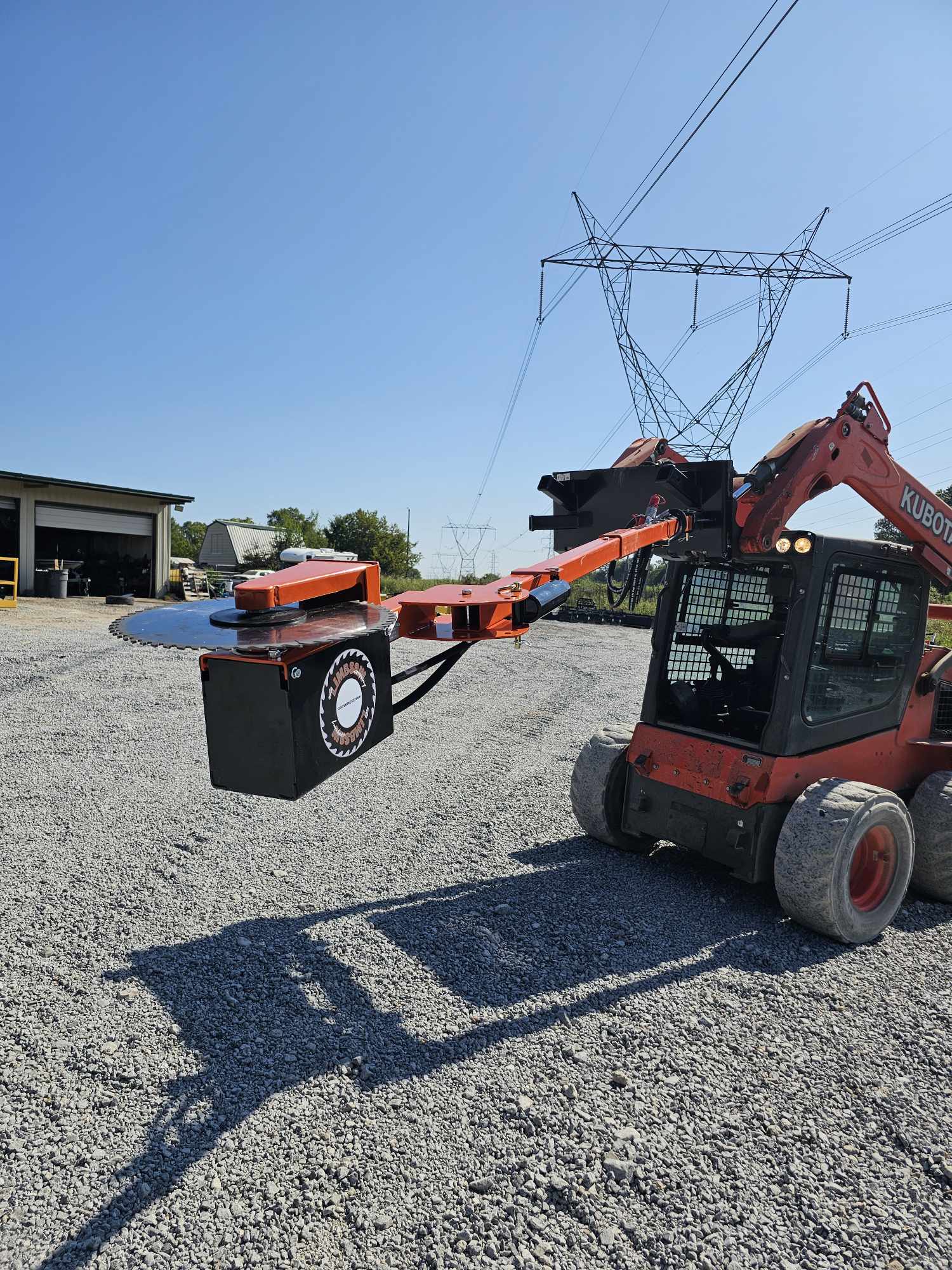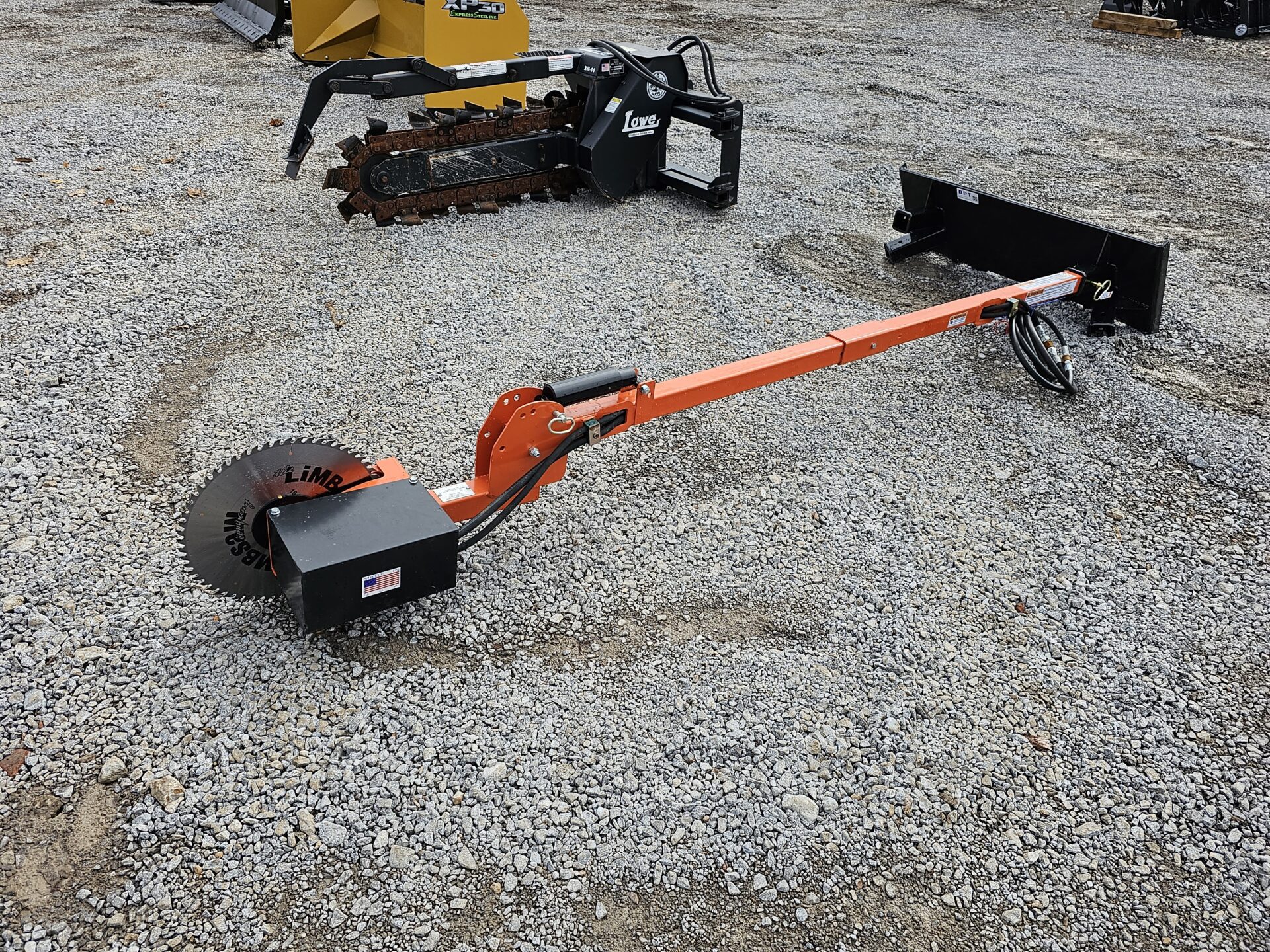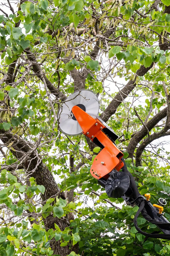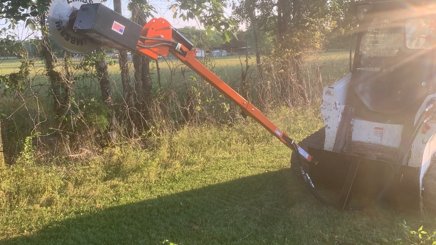 The Hydraulic Circular Limb Saw is a loader attachment with an 10′ mast that allows you to trim trees from the safety and comfort of your equipment. Running off your auxiliary hydraulics, it can reach up to 23′ when mounted on a standard loader. Operates at 11,000 RPM with a 16 5/16” carbide-tip blade and only requires 10 GPM hydraulic flow, allowing it to be mounted on a tractor or skid loader. The saw can be mounted with the blade horizontal or vertical.
