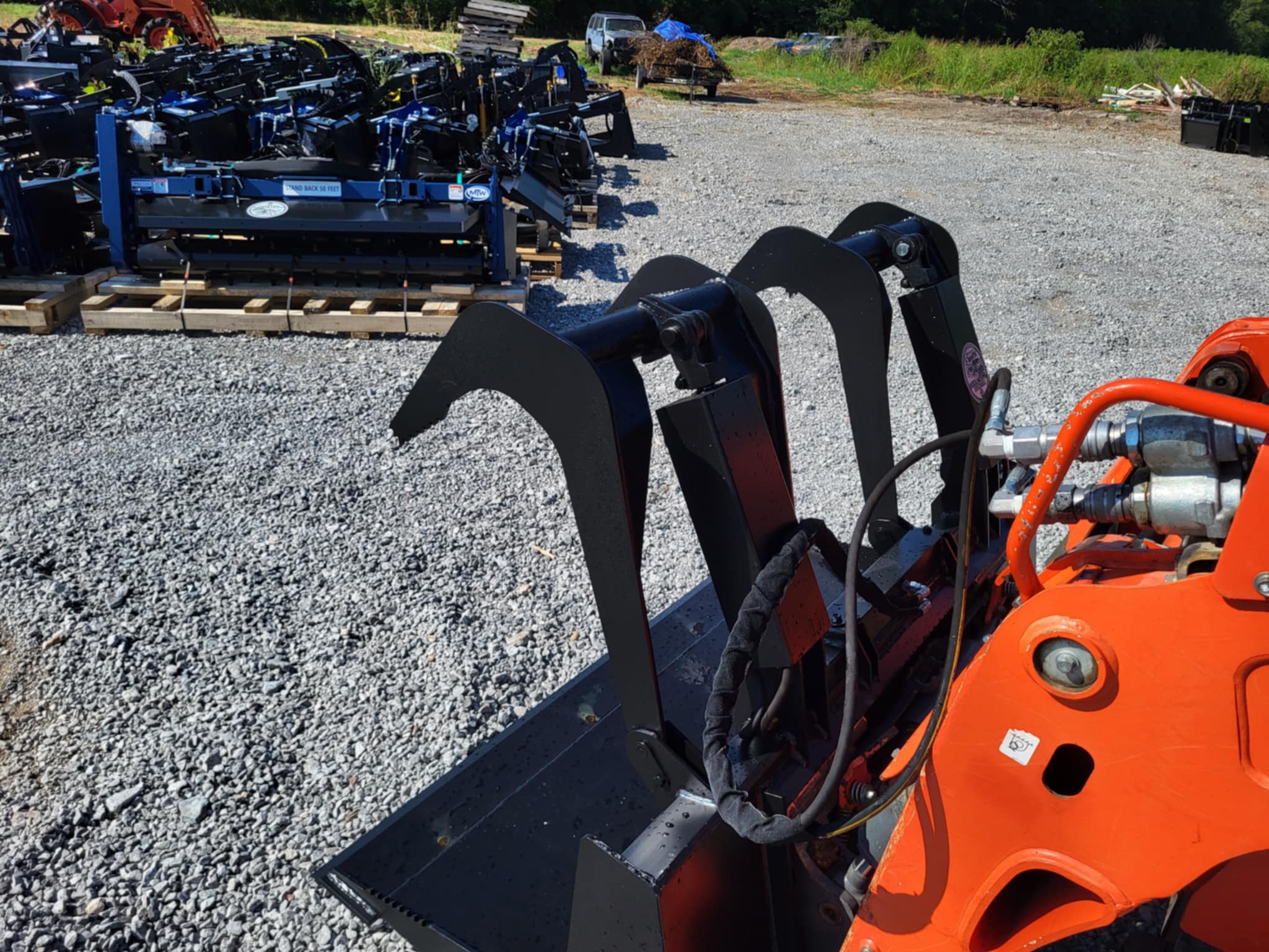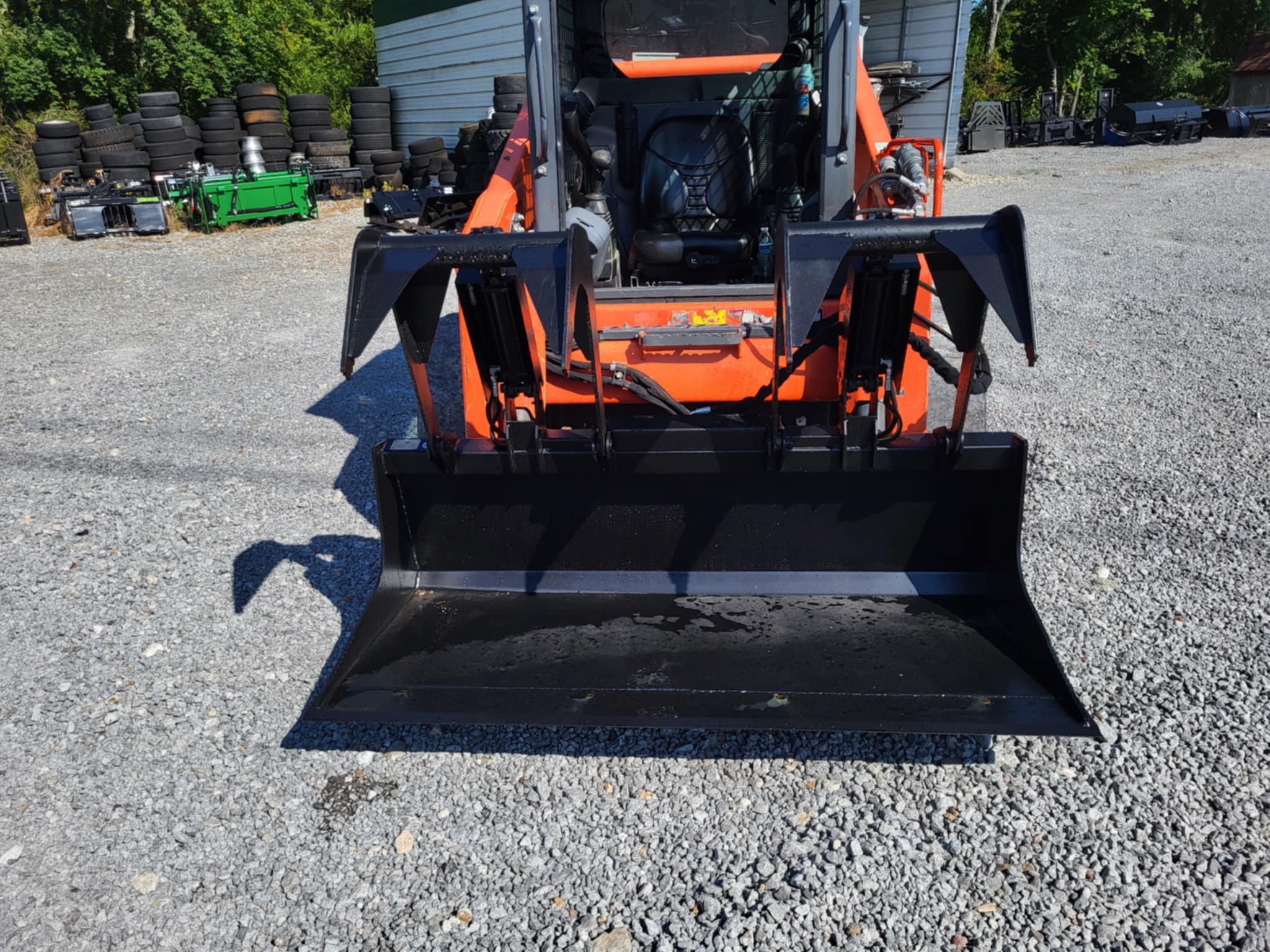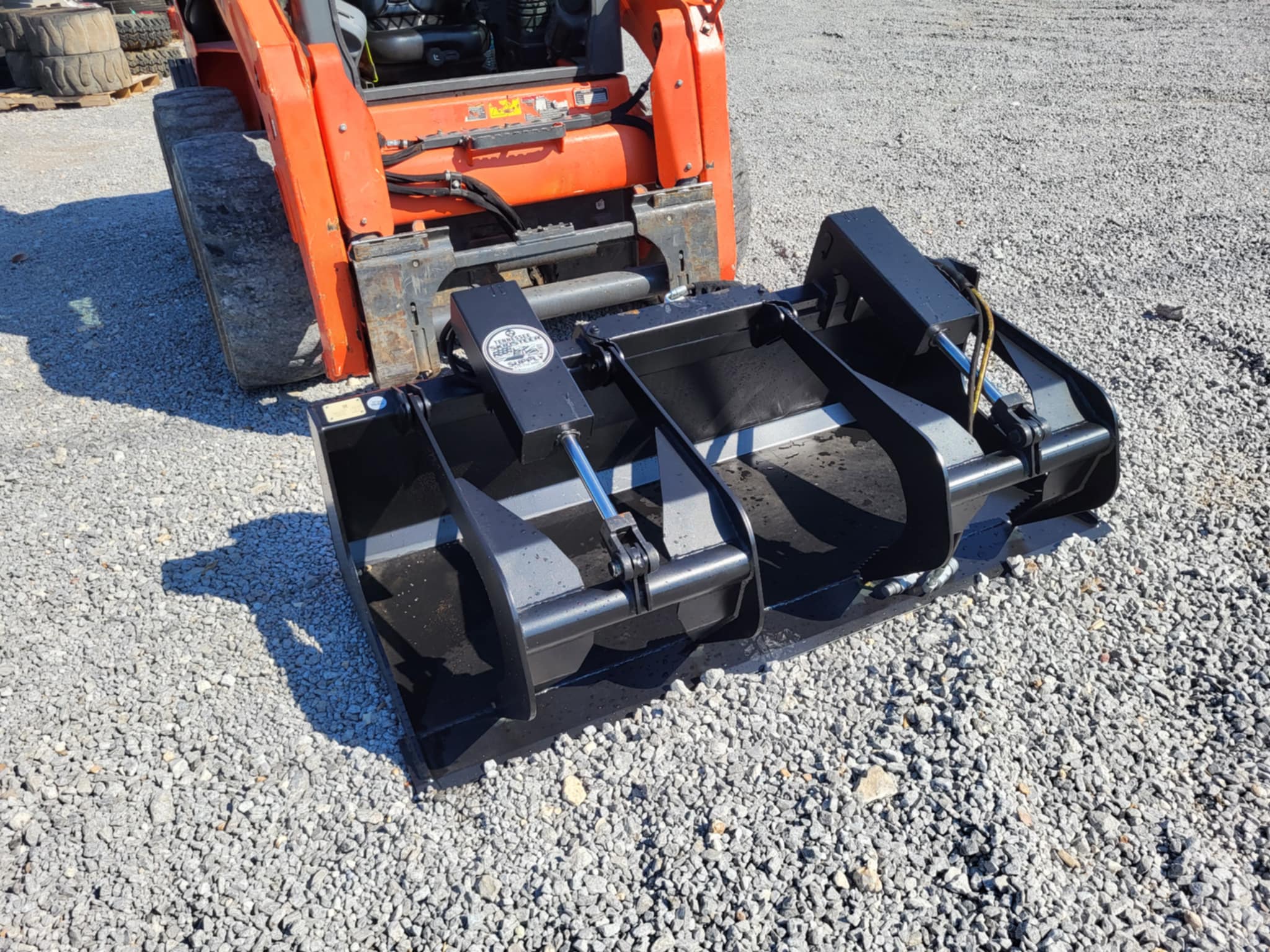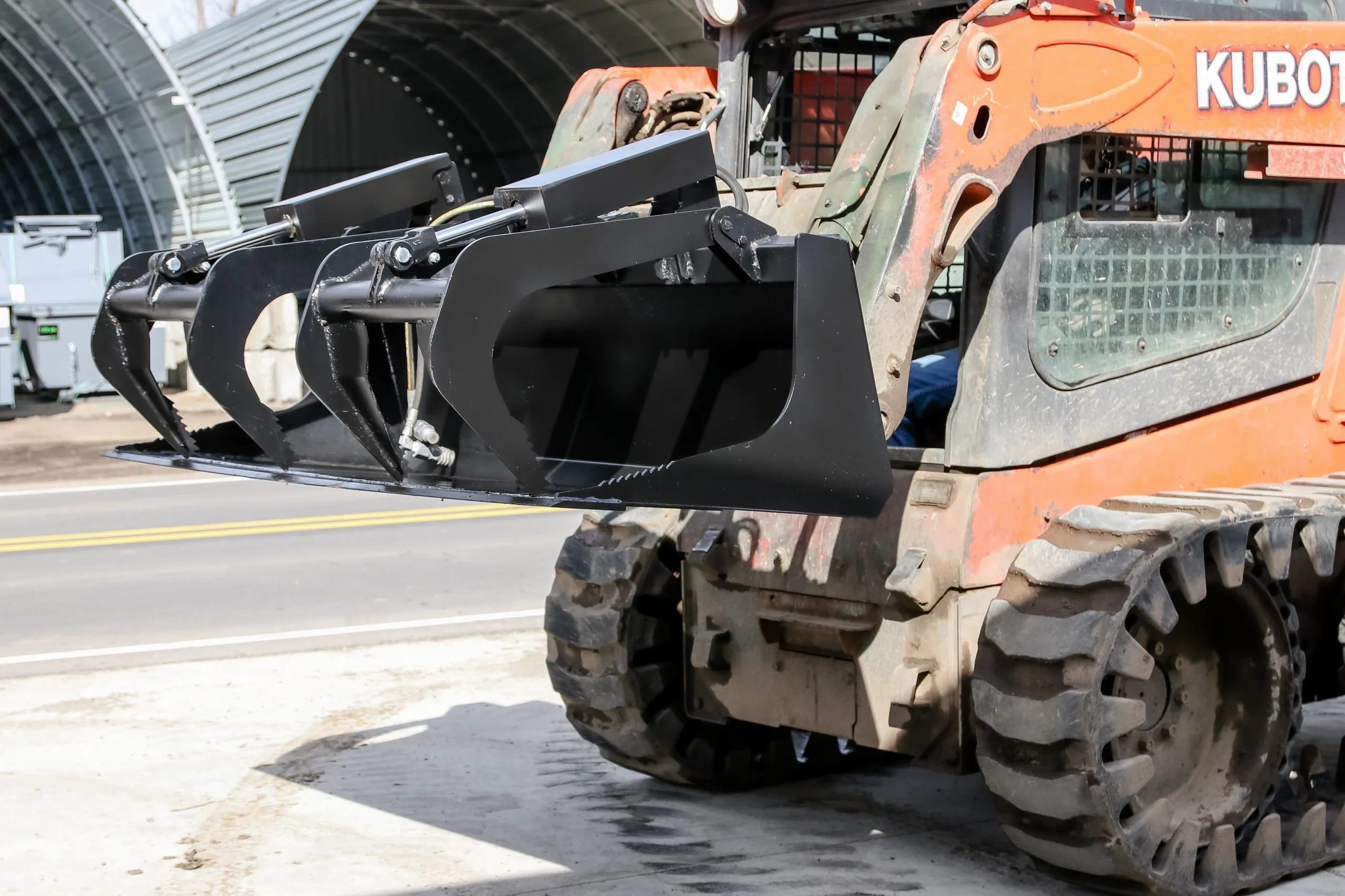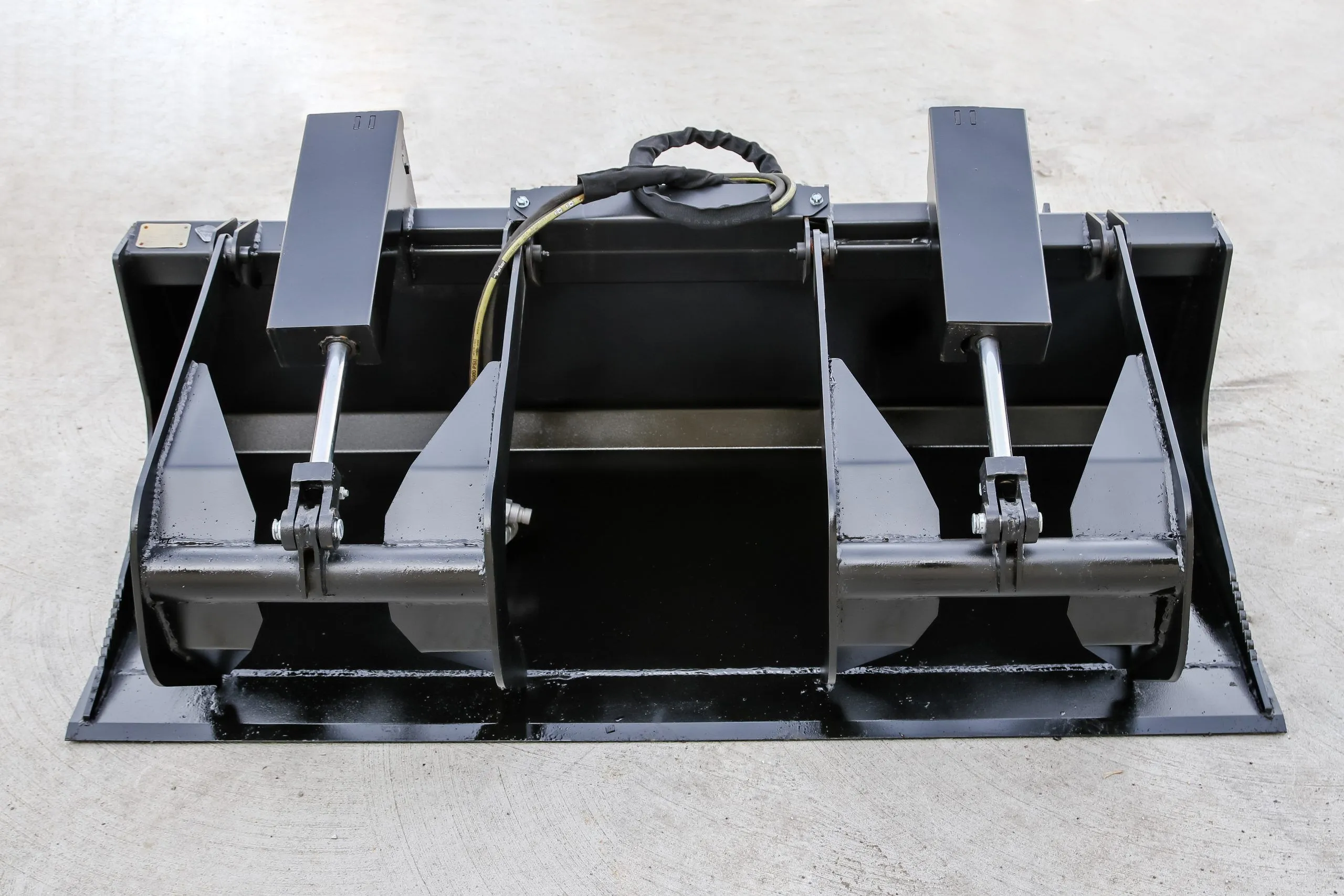 This two-cylinder solid bottom grapple perfect for loading, scooping, and moving debris