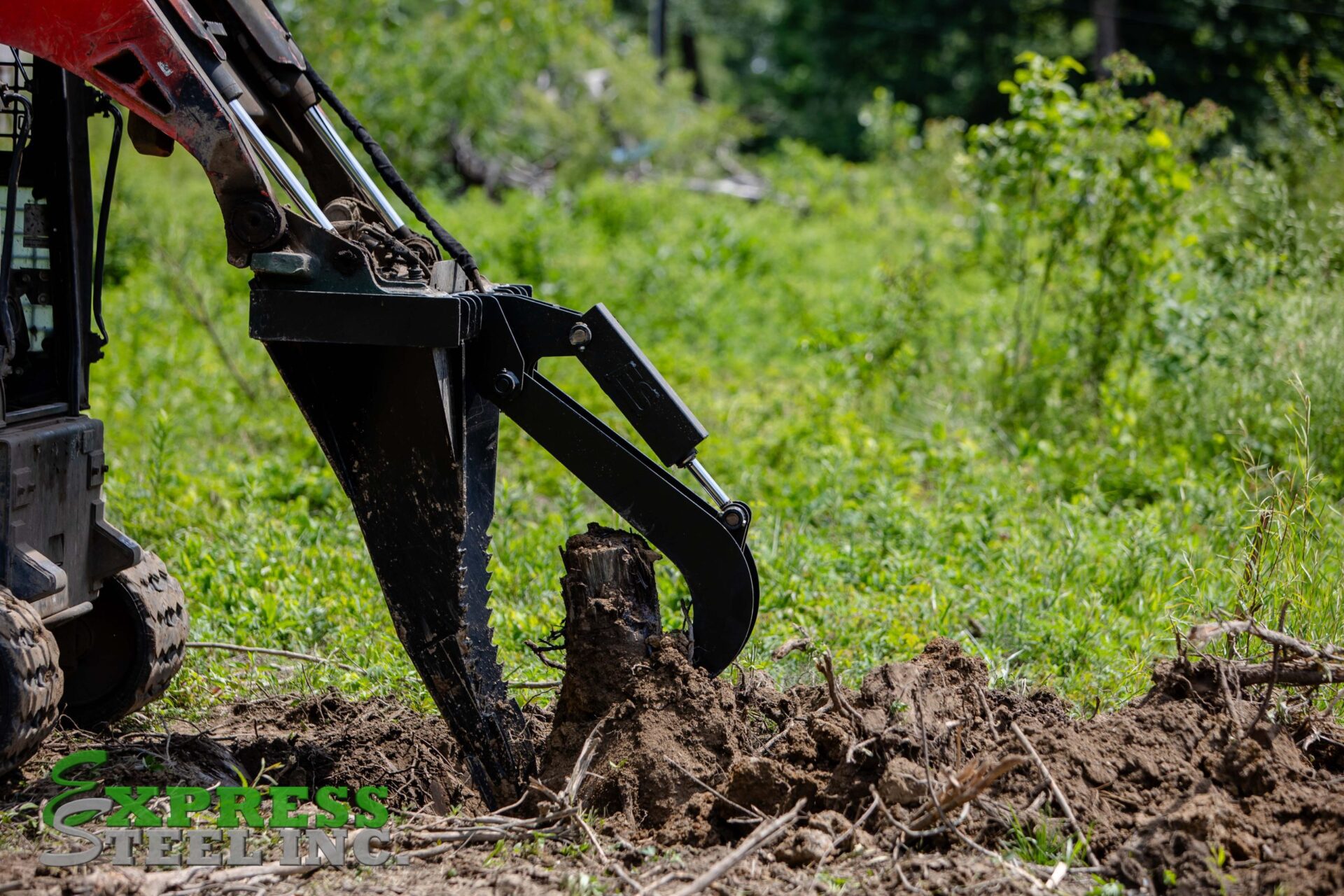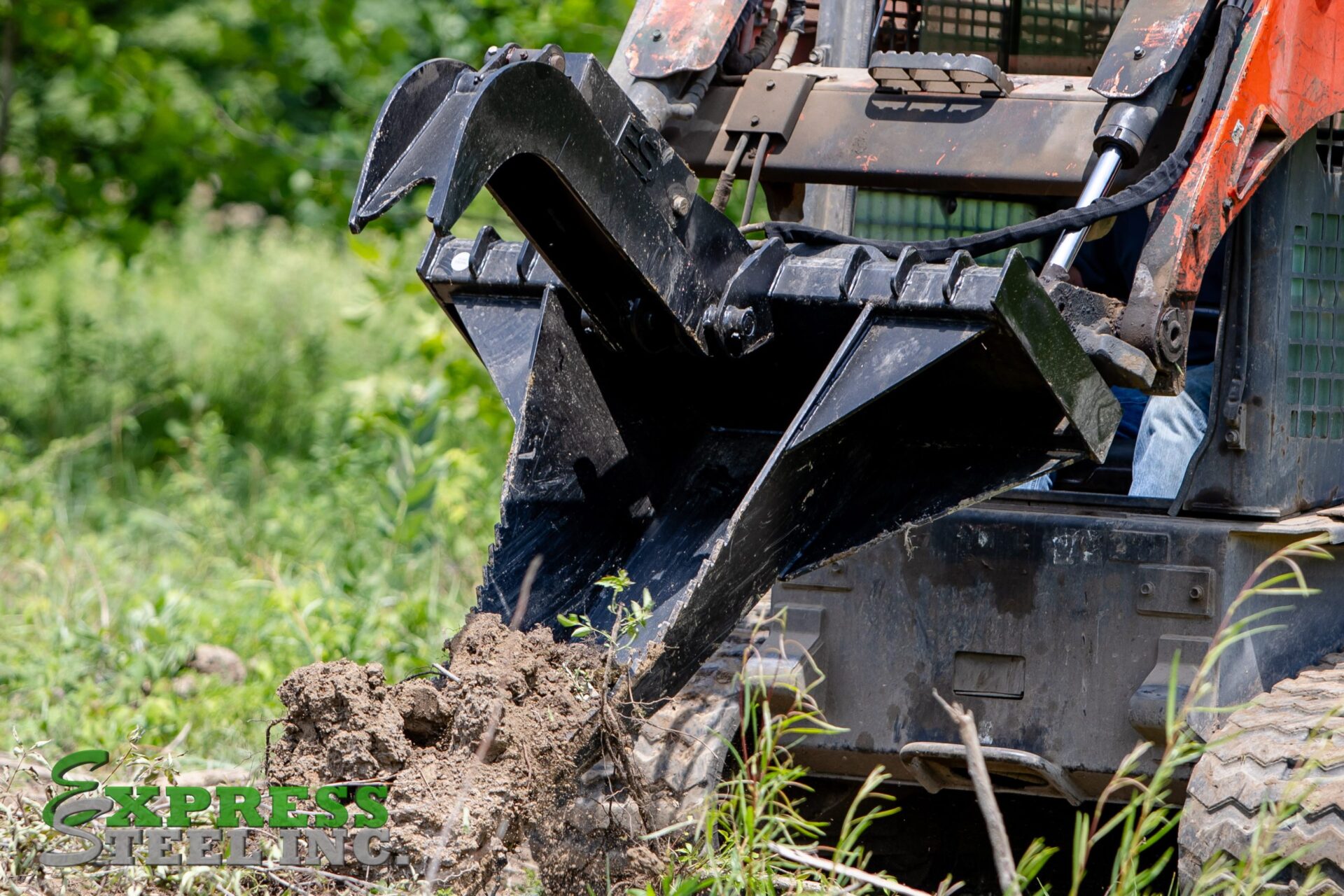 The perfect skid steer attachment for getting rid of those difficult to remove stumps, and carrying and moving the debris.