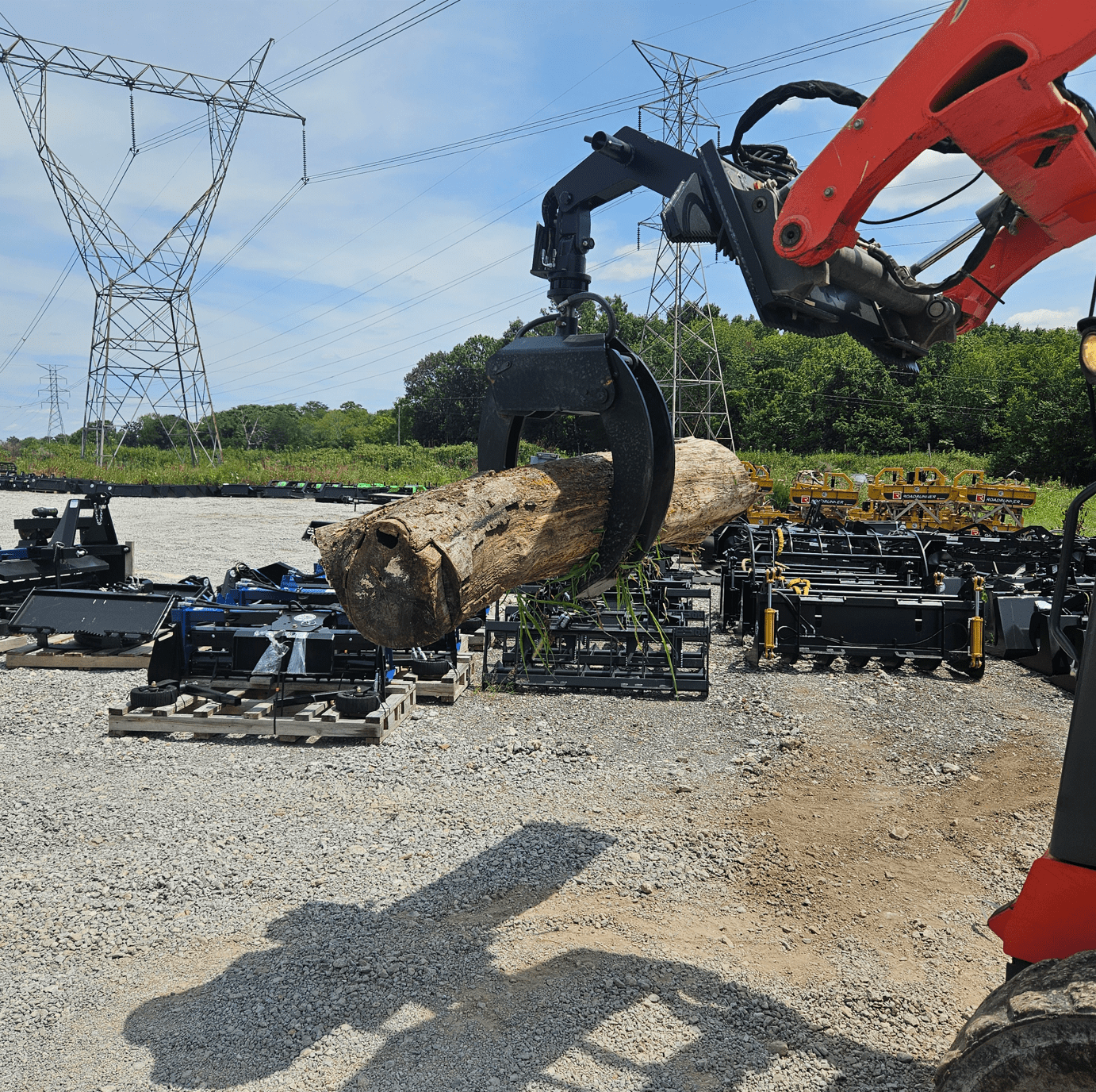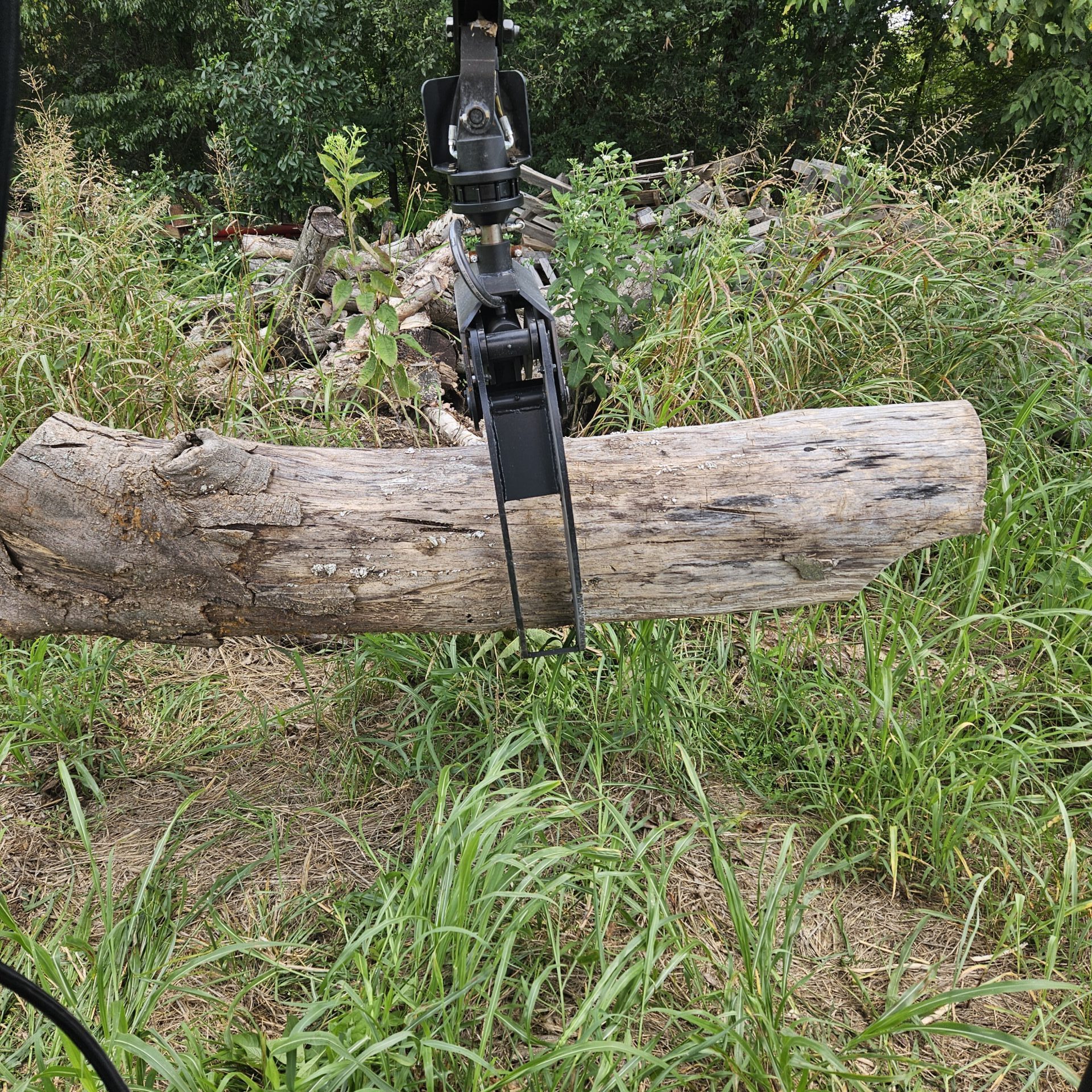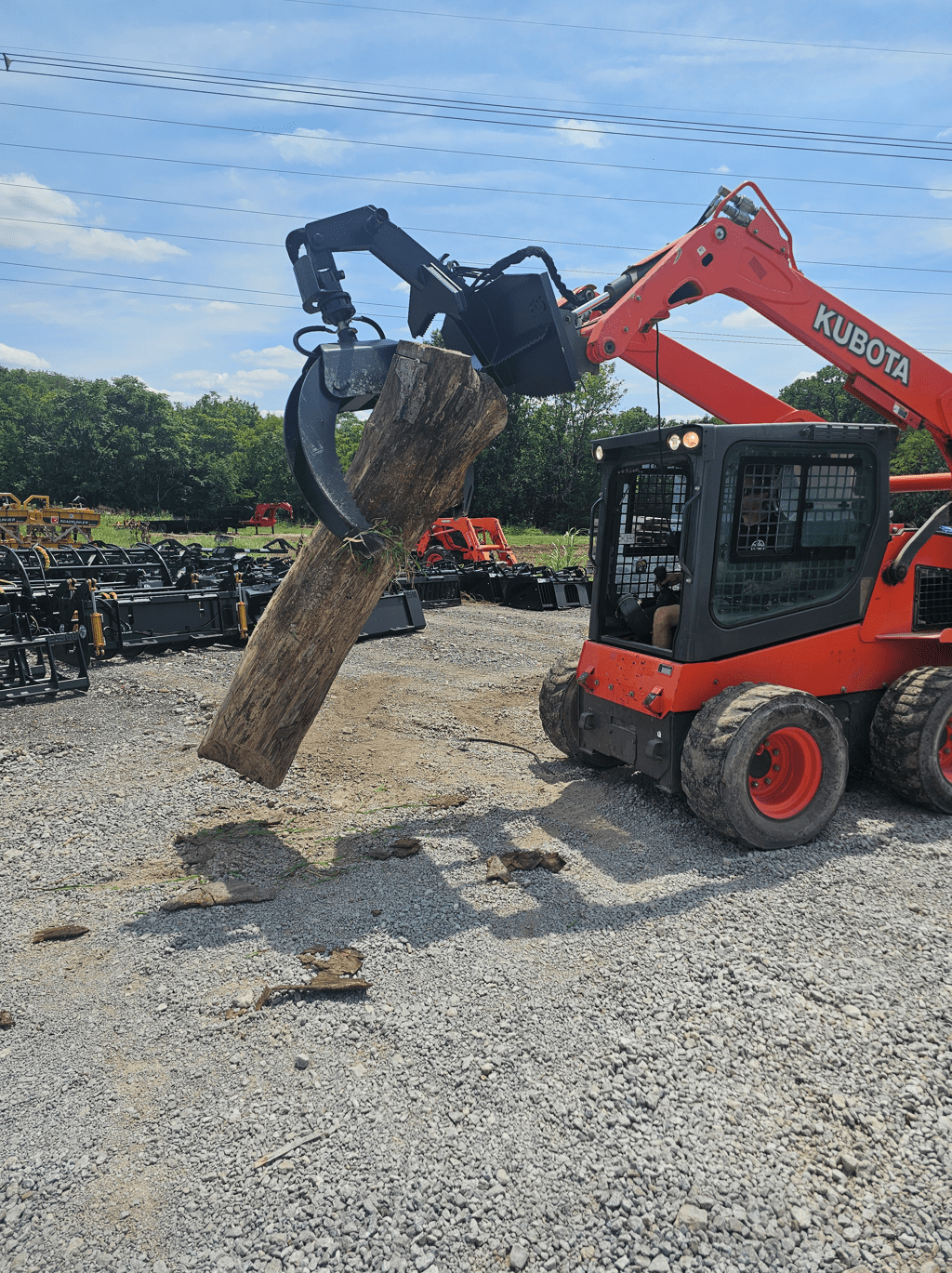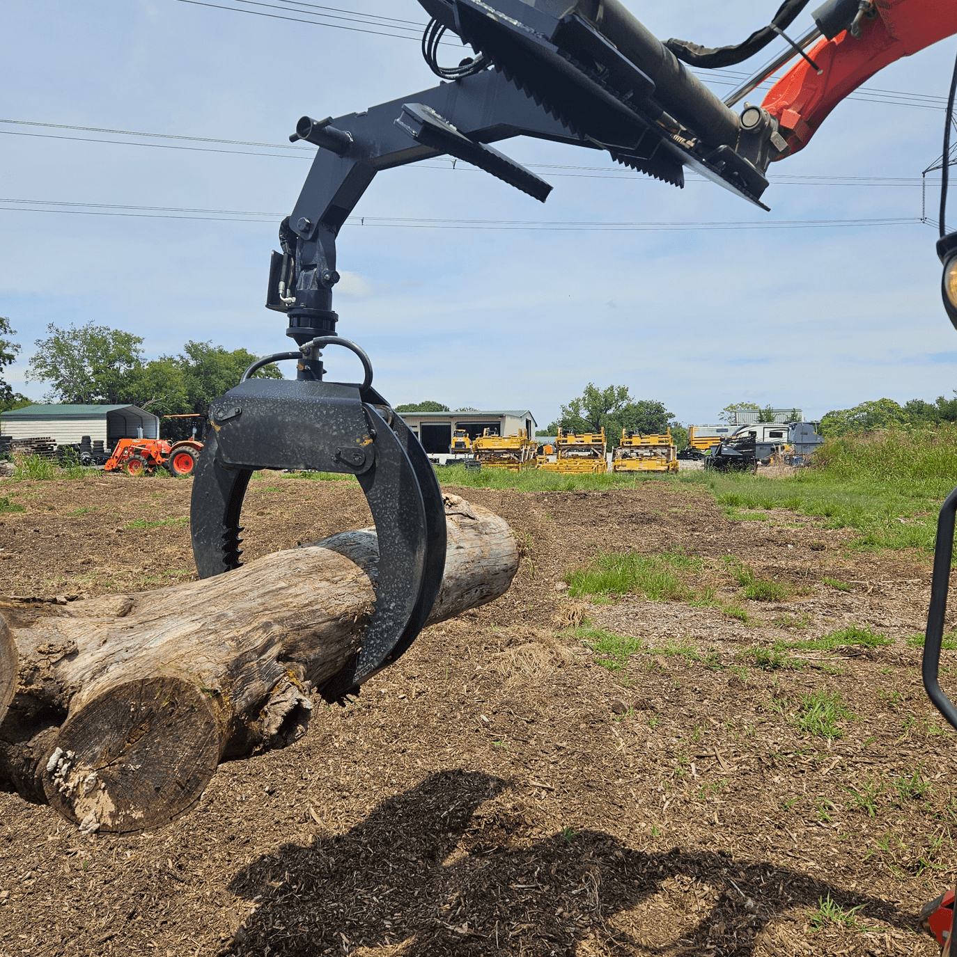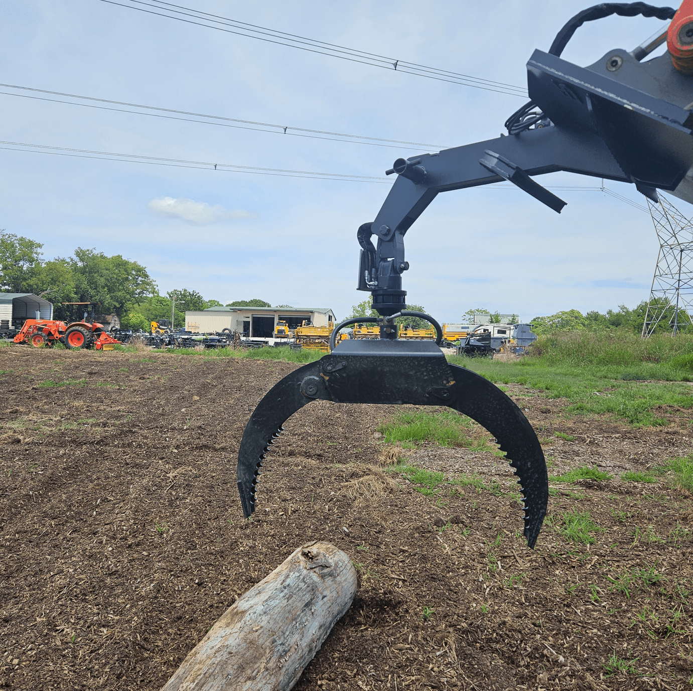 This log grapple is the perfect tool for the job, whether you’re working in the log yard or clearing land. This attachment is 2-way hydraulic. It comes with a wiring harness that fits to the attachment and to the 12v plug in the cab of your skid steer. When you hold the button the claw spins clockwise or counter clockwise. With the button depressed it opens and closes the claw.