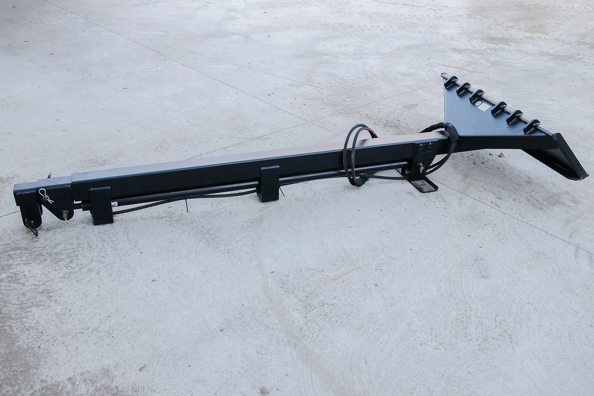 Our hydraulic teleboom is perfect for truss installation, roofing/shingling, light pole installation, pole placing, sign installation, general construction, and more. It securely holds materials in place, ensuring accuracy and speed on the job.