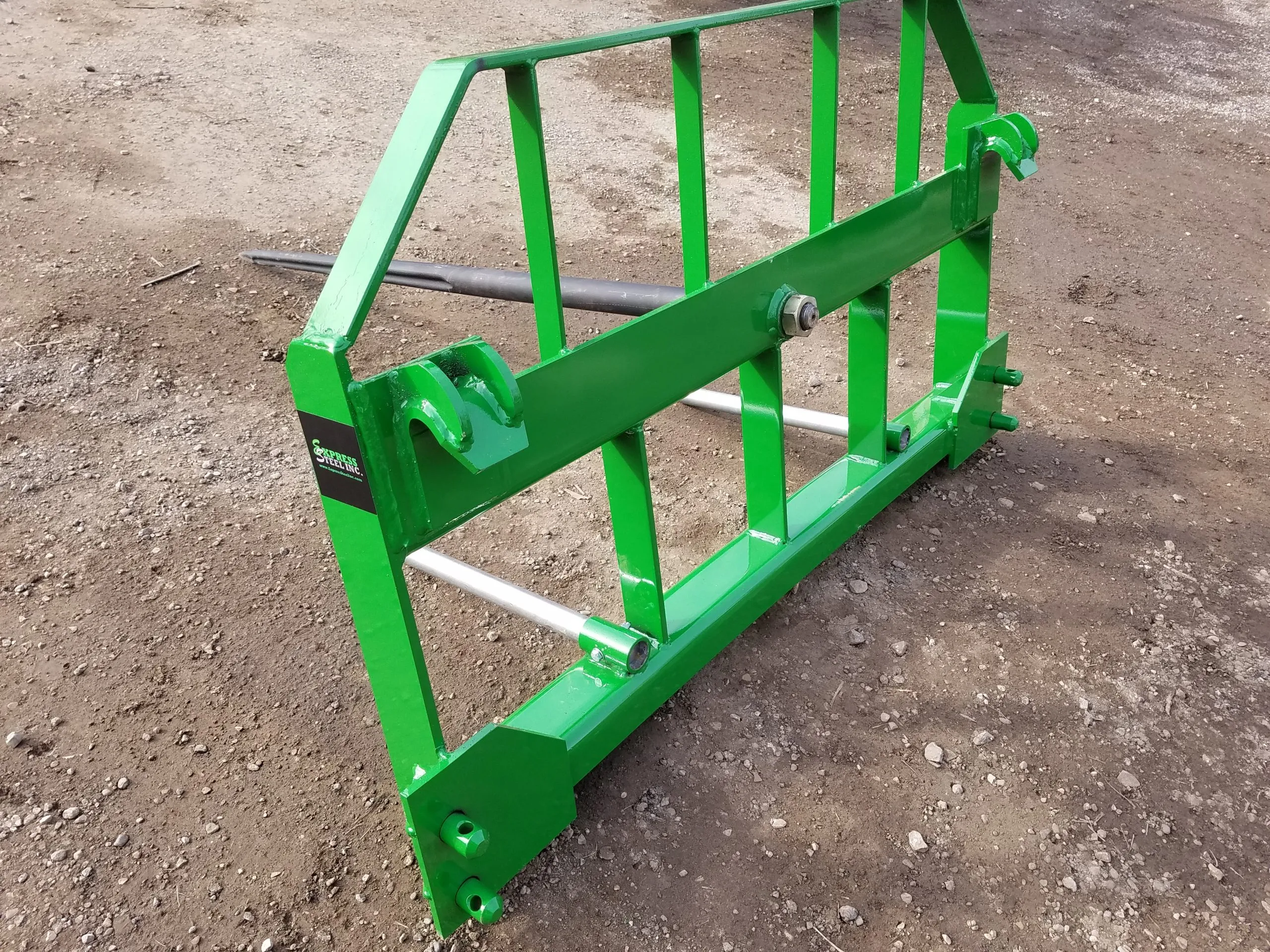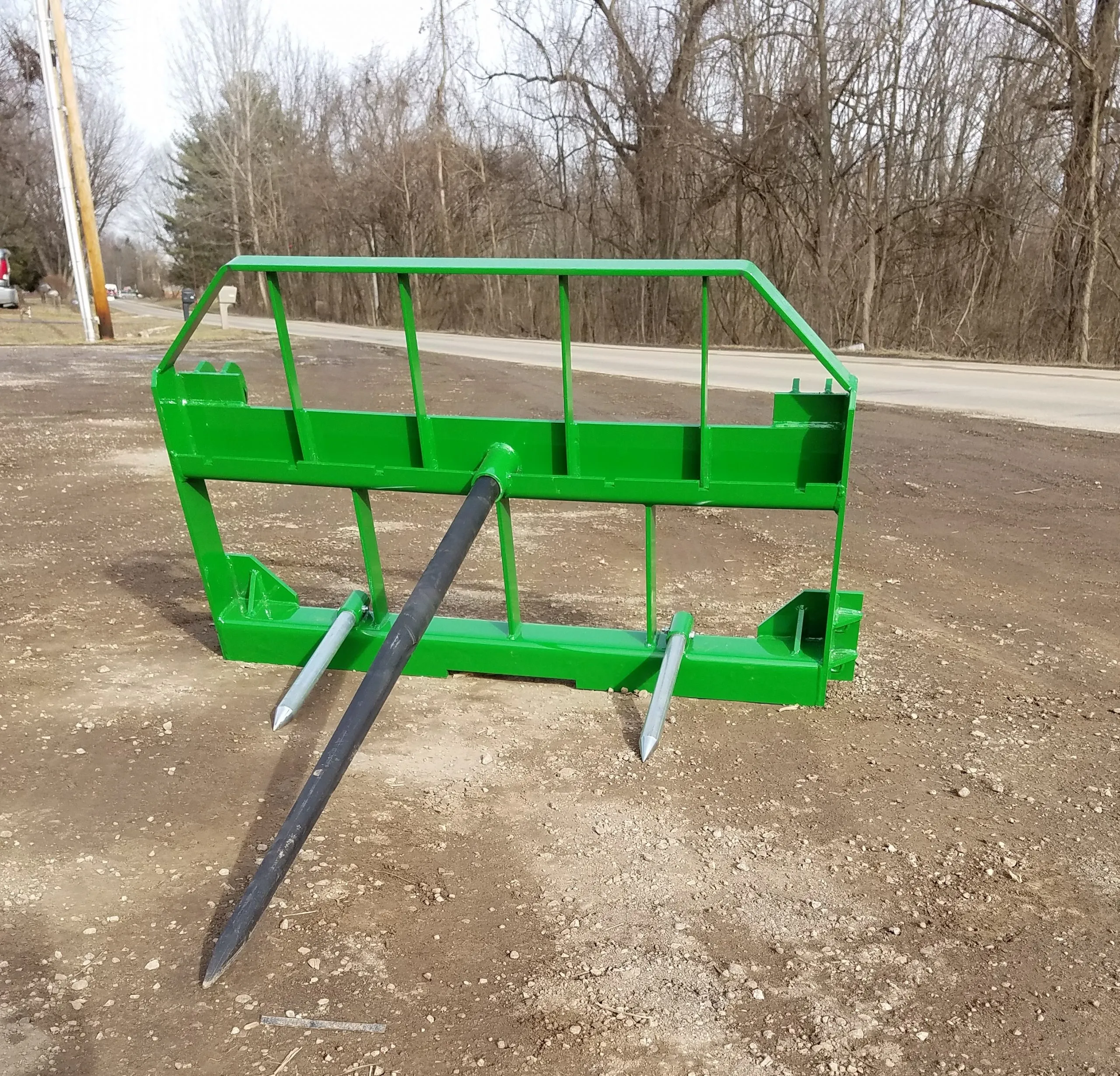 The durable open frame design allows for maximum lifting without the added weight. Fits to your John Deere compact tractor in seconds using the JD quick attach system. This makes moving and lifting bales an effortless job!