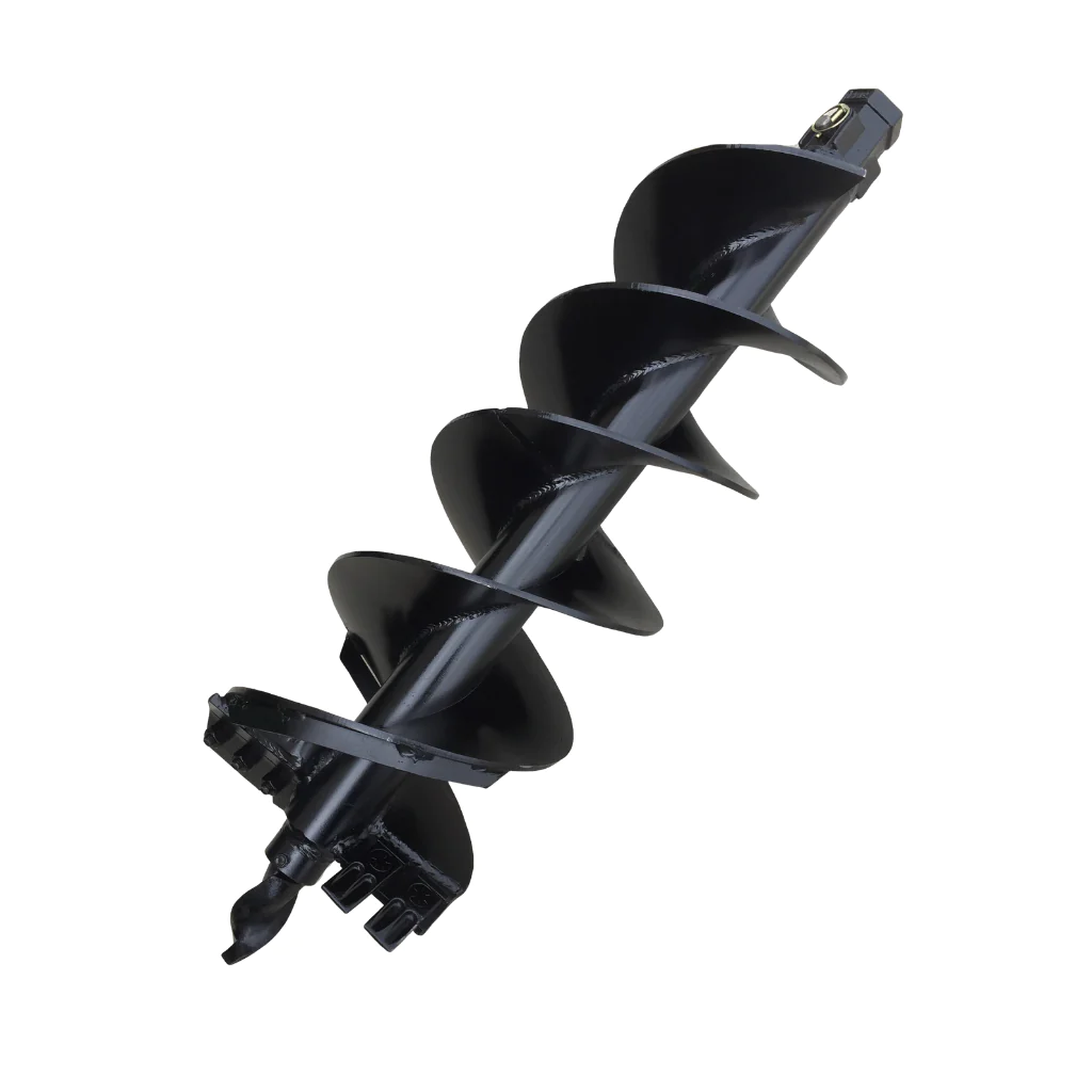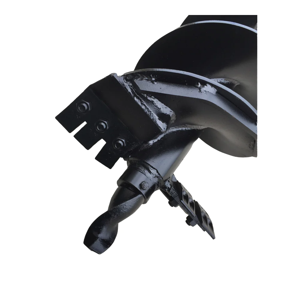 Lowe SQ-Series Augers are an excellent combination of performance and price. They feature a fabricated boring head, bolt on teeth (standard heat-treated or optional carbide tipped), heavy duty double wrap flighting, hardened fishtail center point (carbon tipped center points are also available), and made to fit 2” (51mm) hex shafts (In stock at TN Skid Steer Supply) or 2-9/16” (65mm) round (by order only)