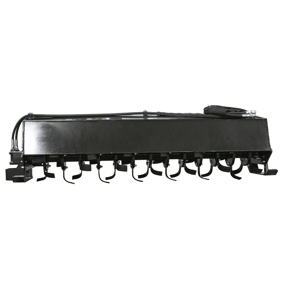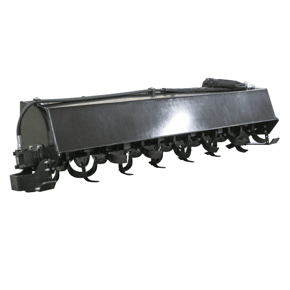 The bidirectional motor saves you time and effort with its ability to rotate the tines backward or forwards, allowing you to pulverize the soil in one single pass without disturbing the soil a second time. The adjustable shoes make the Prime Tiller incredibly versatile in a lot of applications, as they allow you to quickly set the digging depth up to 6”. It operates on standard flow (15-24 gallons per minute), and is available in 62″, 72″, or 84″ lengths