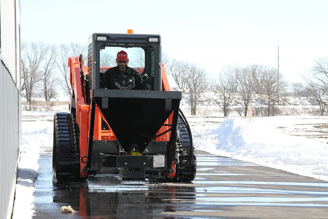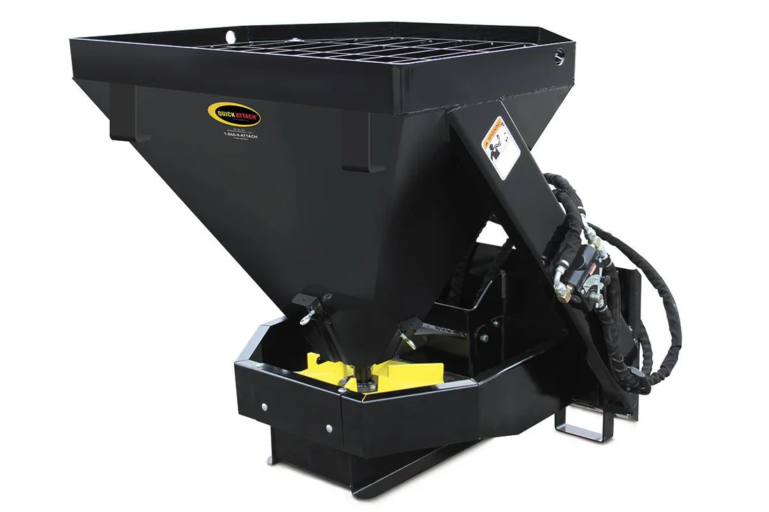 The Salt, Sand and Fertilizer Spreader is an essential part of your attachments arsenal. The large hopper capacity and material release controls work together for increased efficiency on the job. Quality materials and workmanship prevent unwanted downtime as you work to make sidewalks, parking lots and roads safer during icy winter months, or fertilize during the spring and summer months. Use the flow control valve setting to spread over distances varying from 4’ up to 35’.