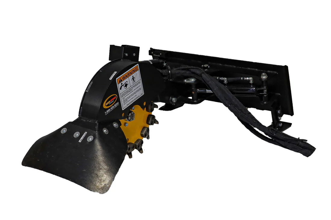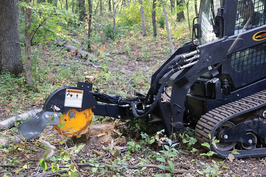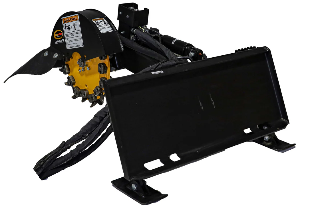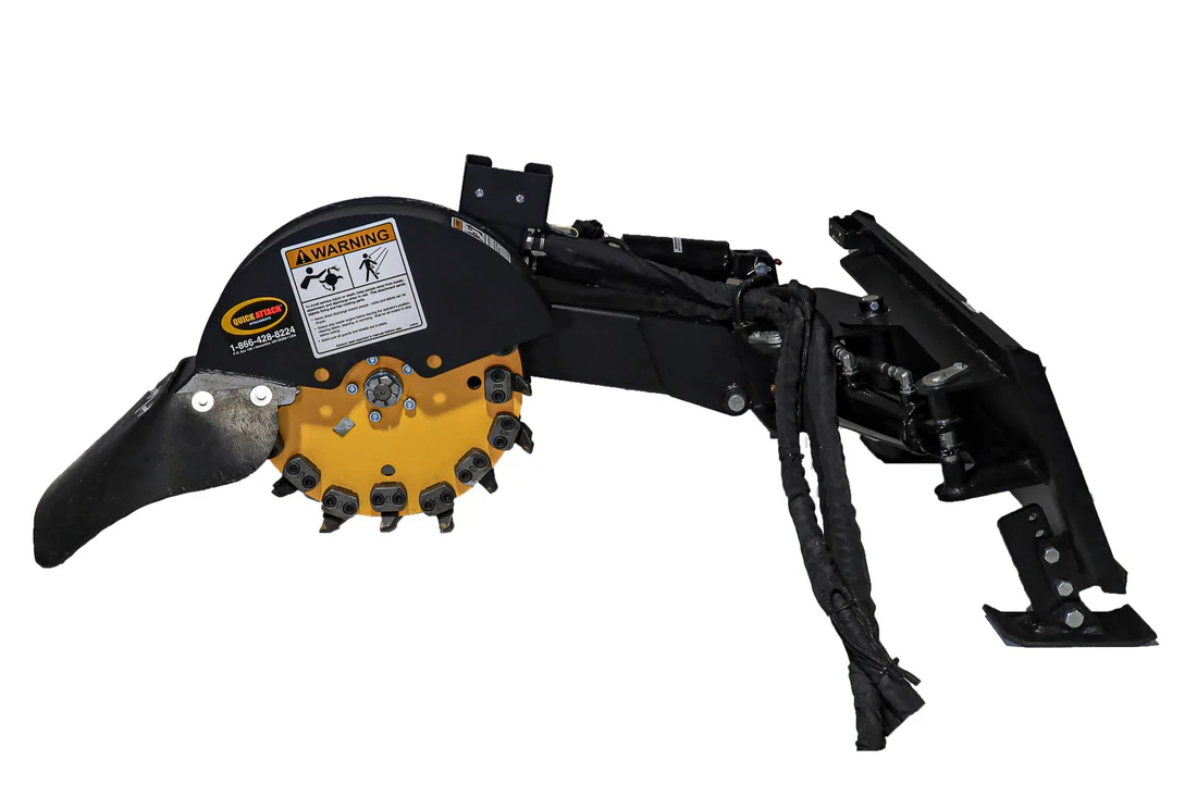 The Skid Steer Stump Grinder is the choice for arborists, large contractors, landscapers and maintenance departments. Mounted on a skid steer, these units are easy to maneuver into tight areas that would be impossible to reach with other types of machines without creating unnecessary property damage. It features the ideal combination of maneuverability, power, durability, and simplicity.