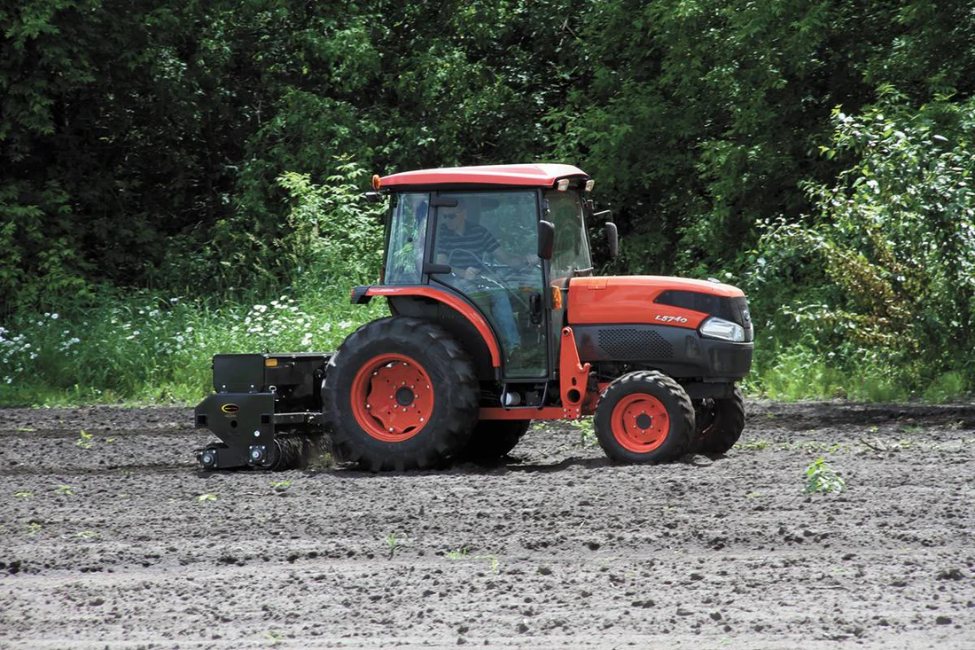 The Landscape Seeder, a bidirectional seeder, is built to handle all turf and landscape seeds. Grass seed is a very expensive commodity. Notched rollers properly place the grass seed in the top 1/2” of a properly prepared seedbed, resulting in maximum seed germination. Seedbed is left smooth and firm with small stones pressed down. Because of this precision placement seeding rates can be reduced up to half of the rates previously used.