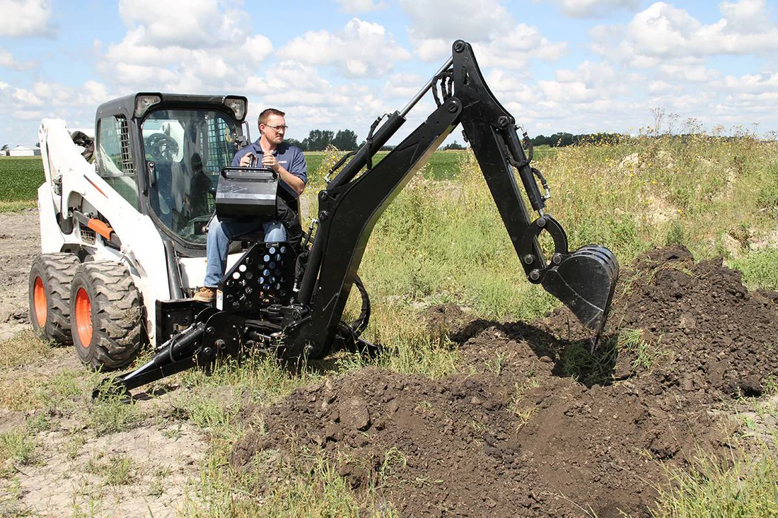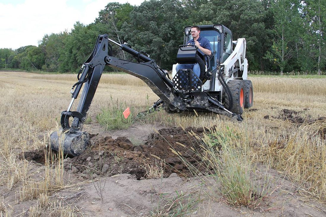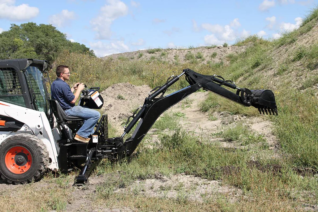 The versatile curved-boom backhoe attachment fits your machine and your property. This is a rugged backhoe that’s ready to sink its teeth into any task you give it, from landscaping to concrete footings. The responsive controls give you precision and power at your fingertips. Running deep with features, the backhoe will turn a mountain of a job into a molehill.